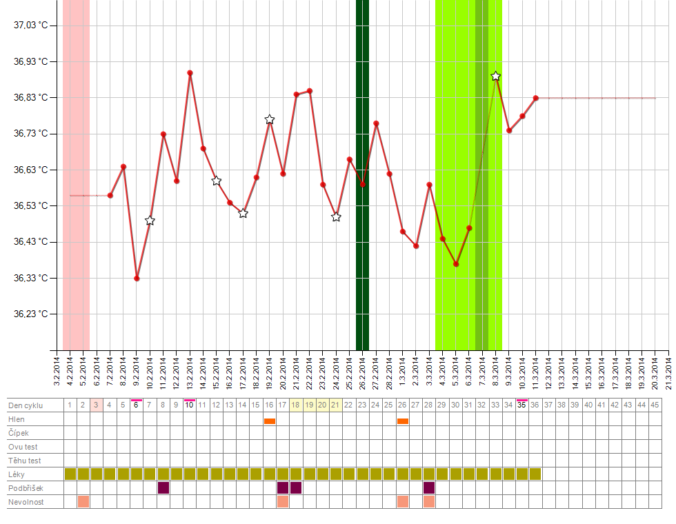 11.3.2014 16:52Ahoj, no, do toho 6.3. to vyzera fakt na anovulak.... nemohla ovu prebehnut toho 6.3. respektive niekde okolo tohto datumu ?, skoda ze si za tym nemerala, lebo neskor vidno, narast teploty, cize akoby ovu prebehla.... ale az toho 6.3. alebo neskor .... ja som BT merala niekolko cyklov, u mna BT pekne stupala po ovulacii, ono aj ked ti doktorka na ultrazvuku povedla, ze vidi moznost ovu, tak niekedy sa stane, ze folikul nakoniec nedorastie a nepraskne a vajicko sa teda neuvolni.... mozno za tym boli problemy mocovych ciest.... a je dost mozne, ze sa ovu aj posunula a ozaj bola az po tom 6.3. .... drzim prsty, ak nie v tomto cykle, tak nabuduce to vyjde