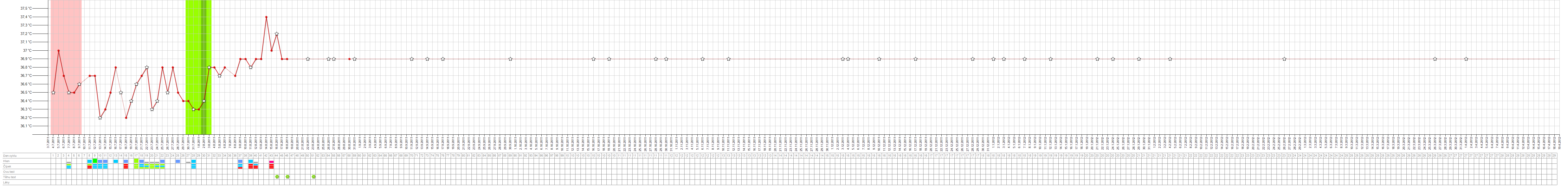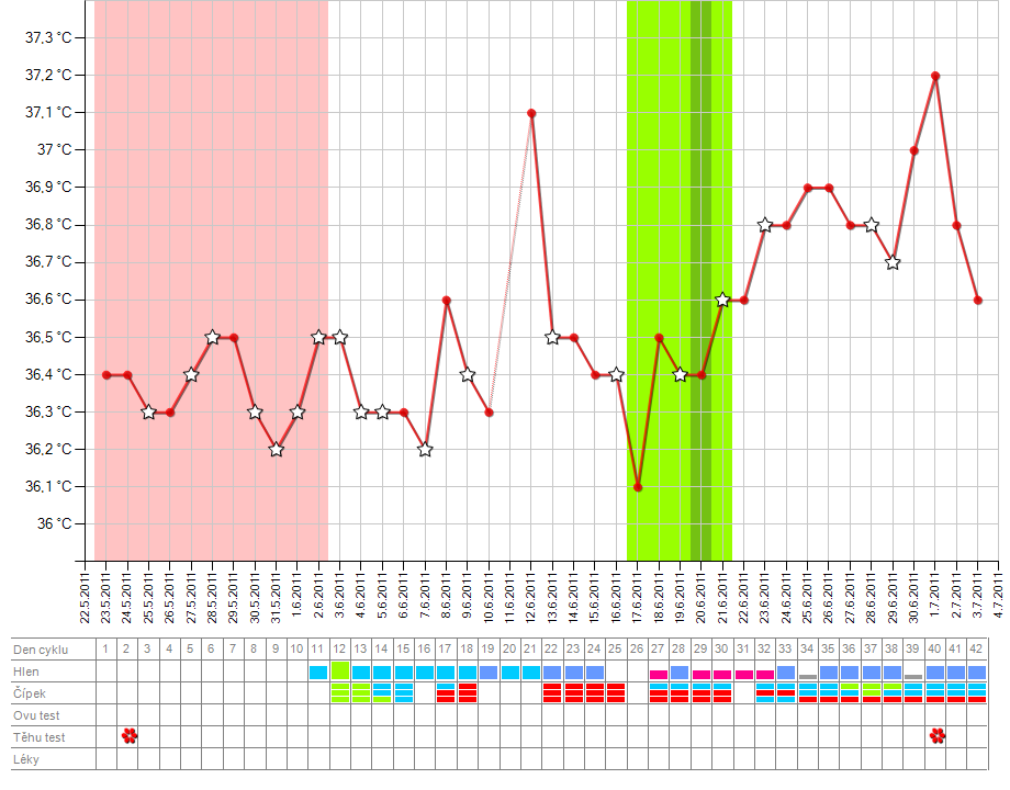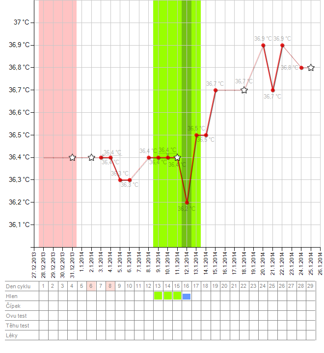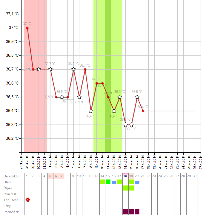 Je mozny aby ovu probehla toho 14.,15. ale teploty se zvedly az o par dni pozdeji nez to bylo do ted? Bricho me porad poboliva. Pro prehled prikladam ,,obecny,, muj graf a nynejsi (plus pro porovnani z prvniho tehu)