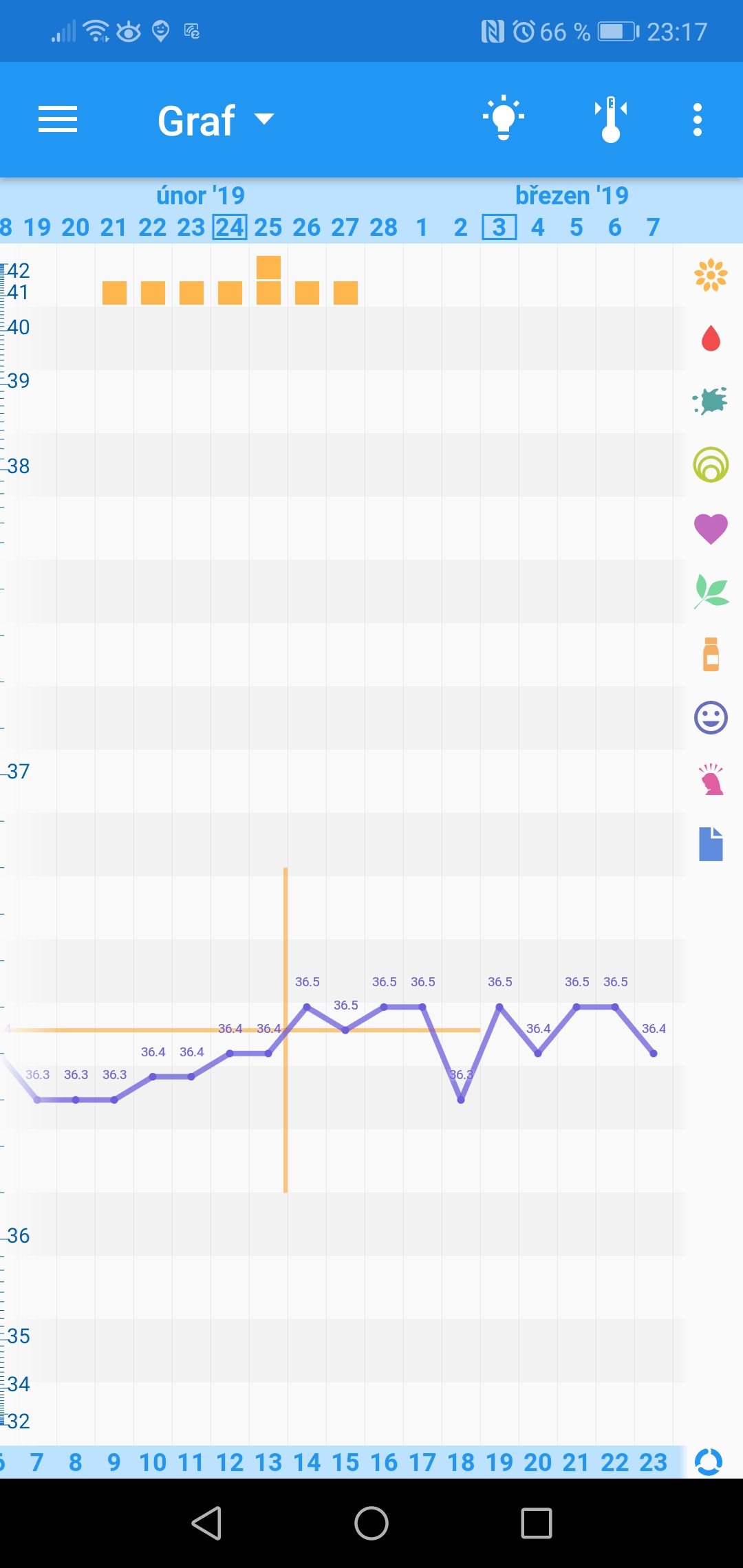 Ahoj holky nějak se už v tom ztrácím podle bt bych neřekla že byla ovu ale jiné kalendáře ukazují že ani i toho 25.2.byl čípek otevřený hlen také ale co mě zaráží tak ty nízké teploty za celou dobu co měřím tak takové jsem nemnela tak se v tom malinko ztrácím