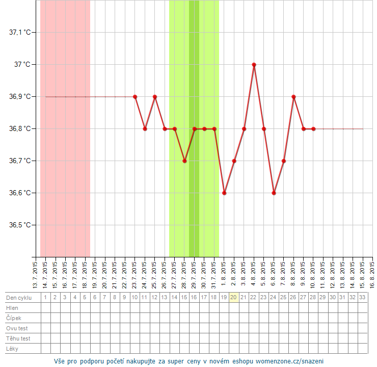 24.9.2015 16:37Ahoj mě přijde podle grafu, že cyklus je anovulační a nebo teprve ovulace nastane. Třeba bude tenhle cyklus delší a tak i ovu bude později. Zkus vydržet, ale zatím to na ovu si myslím že nevypadá....