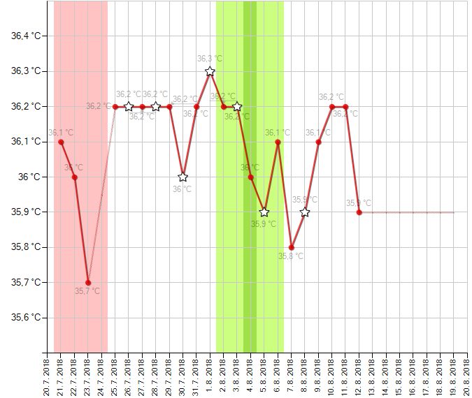 Ahojte, chtěla bych se zeptat, jsem 24DC, do MS zbývá cca týden... A můj dotaz zní, jestli podle grafu ovu vůbec proběhla? BT měřím každé ráno ve stejný čas v puse. Beru Gynex na podporu otěhotnění.