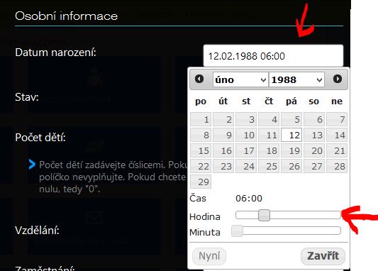 Ahoj holky, kde zadám čas narození? Píše se, že v osobních informací, ale tam na to žádná kolonka není. :-( Díky