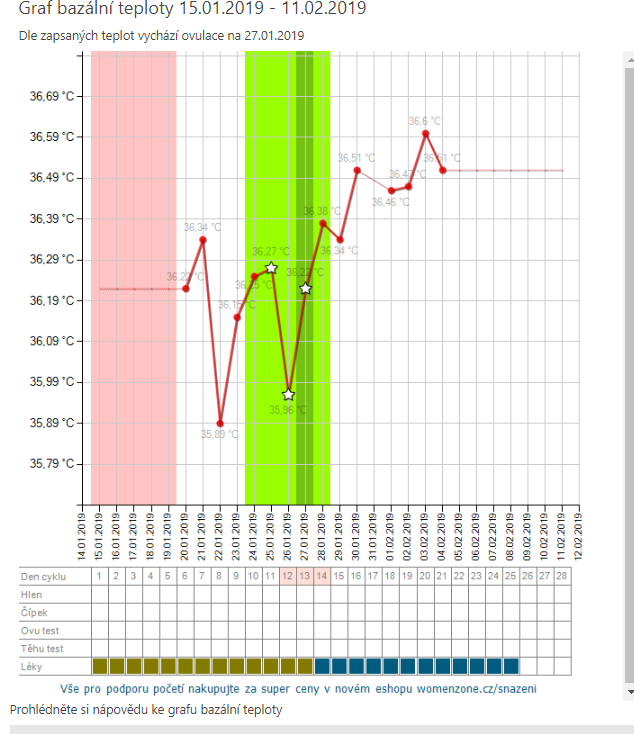 Ahoj, chtěla bych se zeptat. Měřím poprvé BT a začala jsem měřit bohužel až pozdě, 19DC jsem měla pozitivní ovulační test. Myslíte, že i podle grafu proběhla ovulace. Je mi jasné, že to nejde s jistotou říct, když jsem začala měřit až po pulce cyklu. Děkuju za každý názor