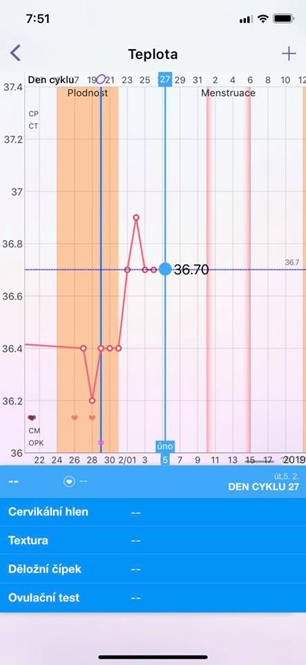 ahoj, taky se přidávám. Měřím po 1. a mám cysty na vaječníkách diagnostikované od listopadu/2018 loni(2017)jsem vysadila HAK a od té doby jsem bez MS jen po vyvolavačkach udajně horm. profil byl OK... od listopadu beru od 14 do 25 DC proveru 5mg 1-0-1 a co to beru cykly mám pravidelné... tento měsíc měřím po 1. a na netu se nějak nemohu dopátrat jak by měl správný graf vypadat.... mužete my vy zkušené měřilky ohodnotit ?