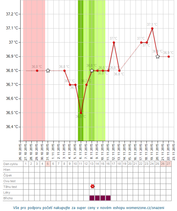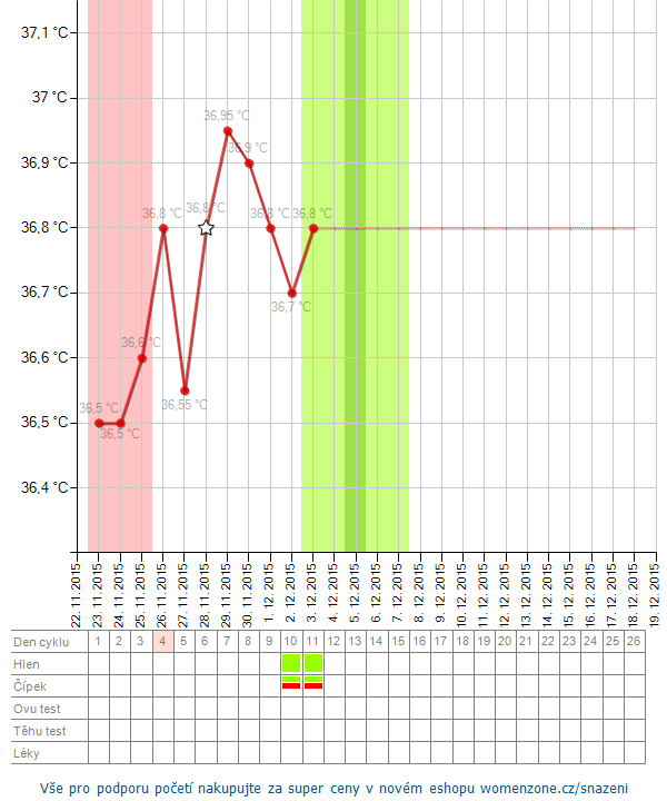 3.12.2015 10:36nemusí být anovulační, ty vysoké teploty na začátku cyklu mohly být něčím ovlivněny. teplota ti v době plodného hlenu klesla, počkej zda zase stoupne a bude se držet nahoře, je pravděpodobné, že ovulace byla. kolik cyklů už si měříš BT? dodržuješ všechny pravidla při měření? teplotu může ovlivnit velá spousta věcí jako např alkohol před spaním, jiná teplota místnosti, stres a spousta další věcí. měř dál a uvidíš na konci cyklu jak bude vypadat celý graf, teď je moc brzy dělat závěry