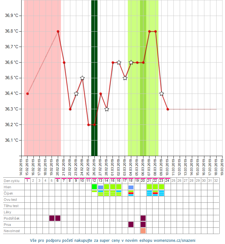 necekam vesteni z koule, zajimaji me spis zkusenosti, nazor.. Na prvnim obrazku minuly cyklus, na dalsich dvou ten soucasny. WZ mi ovulaci neoznacil, FF ano. K cemu byste se klanely? Vic me ale mate ten pokles poslednich dvou dnu, vzdy jsem mivala pokles az v den MS, max. den pred. Navic je jeste celkem brzy, az tak kratkou lutealni fazi nemam (kdyz vezmu v potaz, ze ovulace byla tak, jak ukazuje FF). Cim to muze byt?
