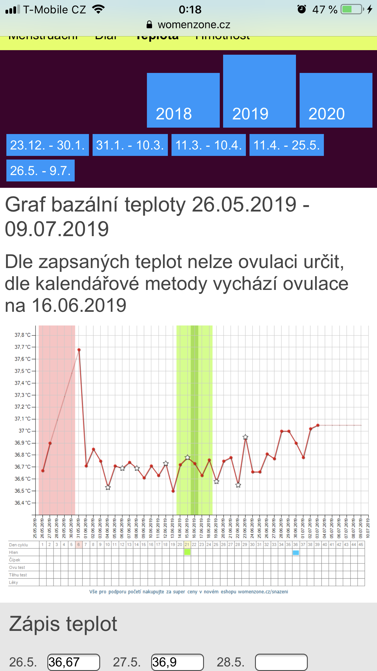 Podle grafů a teplot si také myslím, že ovulace neproběhla a zaráží mě na základě čeho to aplikace takhle vyhodnotila.