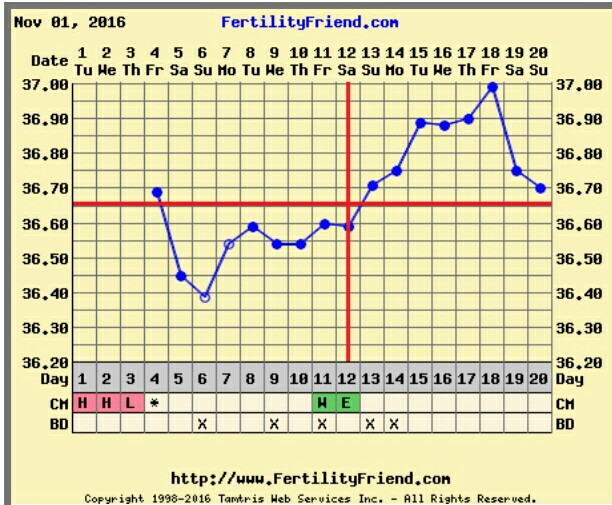Ahoj holky, nevíte některá z vás co znamenat tento dvojitý pokles? MS má dorazit 25.11. a v jiných cyklech BT klesla az den před nebo v den MS. Děkuji moc za odpověď