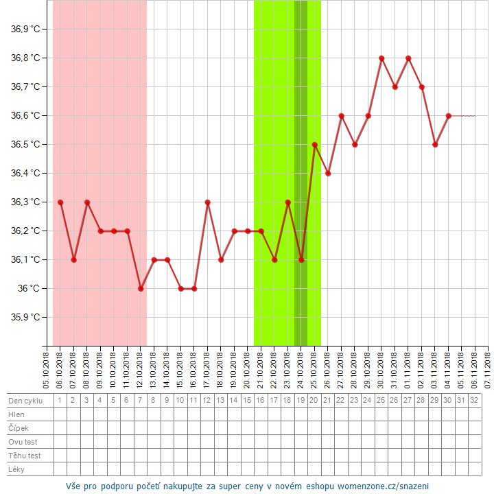 Graf bazální teploty, proběhla ovulace? A ted to vypadá jak?
