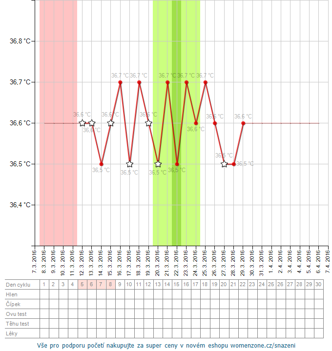 Ahoj holky, odpověď asi znám, ale pro jistotu se ptám. Dle grafu cyklus zase anovulák? Přidávám graf s teplotami zaokrouhlenými i ten nezaokrouhlený. Díky za odpověď.