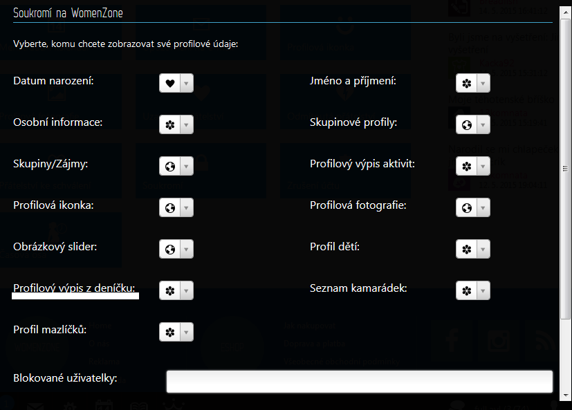 Může být pro kamarádky jen pro vás, či pro všechny uživatele WomenZone.cz a nebo veřejný pro všechny návštěvníku webu.