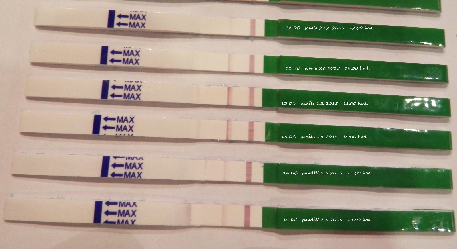 Může být pozitivní, ale nemusí... Když jsou vidět takhle obě čárky, zkus ten den testovat 2x, jednou třeba kolem poledne a pak večer v 19:00. Pokud bude večer čárka silnější, pozitivní ještě nebyl. Dvě hodiny před testováním nepij. Přikládám foto svých ovu testů pro představu. Pozitivní je 13 DC v 11:00 hod. Ten stejný den večer pak už pomalu slábne...