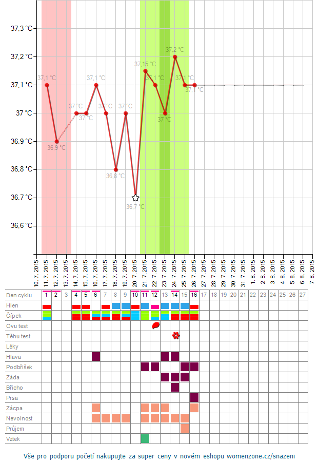 Potřebovala bych radu, jsem nějaká zmatená s teplot. Myslíte, že podle grafu už ovulace byla, teprve bude, nebo je to anovulační cyklus? Díky za názory.