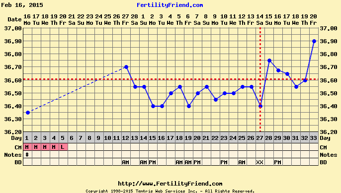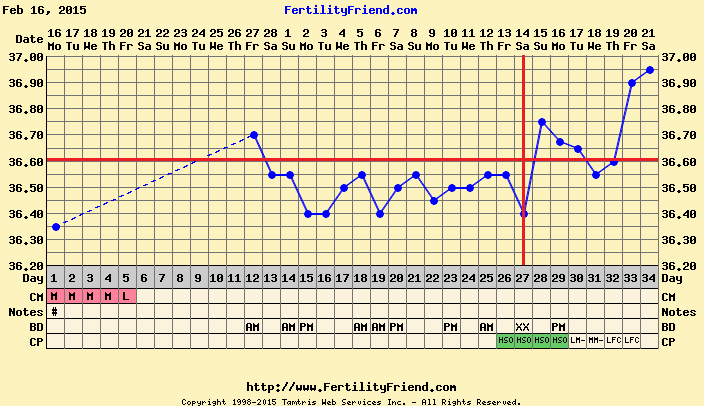 Ahojte, vím, že nikdo mi nedá jasnou odpověď, jen by mě zajímaly vaše názory. Kdy si myslíte, že spíš proběhla ovulace (viz graf). Moc děkuji.
