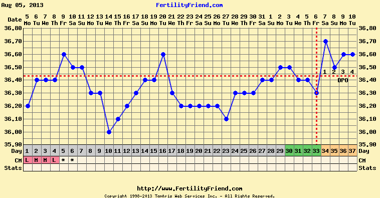 • Dala bych na fertilityfriend. Podle toho grafu to opravdu vypadá na ten 33 den. Mě to tam vždycky vycházelo přesněji. + obrovská výhoda těch stránek - samo si to srovnává podobné grafy.