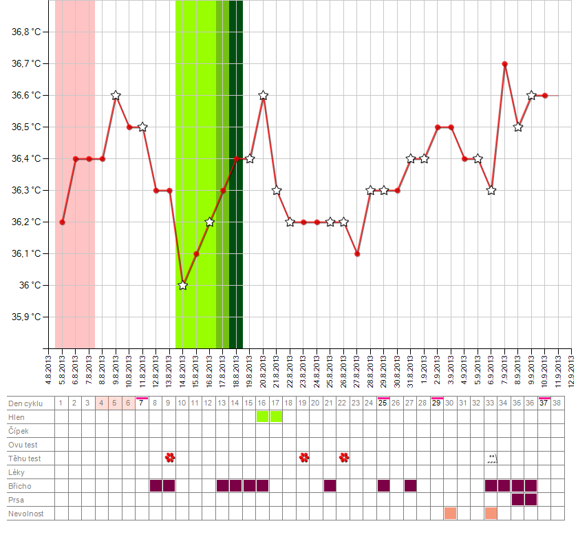 Nevím, jak se k tomu stavit. Dle grafu na womenzone bych řekla, že byla ovulka 23DC – tedy 27.8., nevím, proč to značí špatně a na fertilityfriend mi ji píšou 33DC – tedy 6.9., tak nevím, jak se k tomu stavit a čemu věřit? Děkuji za objasnění :)