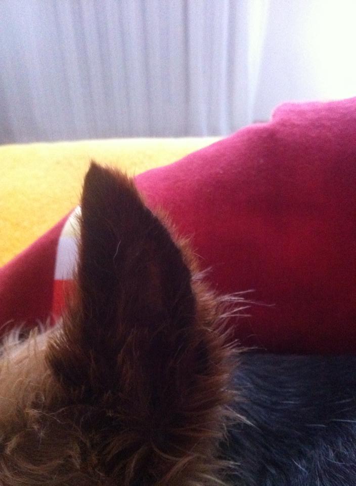 moc prosím o radu, jestli s tím nemáte někdo zkušenost. Máme jorkšírského teriéra. Je mu 8let a pozorujeme u něj vypadavání chloupků i s kousky kůže. Není to nic závratného, spíš na konci chloupku zůstane i kousek kůže. Pozorujeme to pouze na levém uchu. Nebolí ho to, při vybírání chloupků usíná. Pejsek má opakovaně kašel a "pšiká". Nevím zda to s tím souvisí a je nutná kontrola u veterináře. Jinak není apatický, chuť k jídlu nechybí. Přikládám fotku.. Děkuji za odpověď