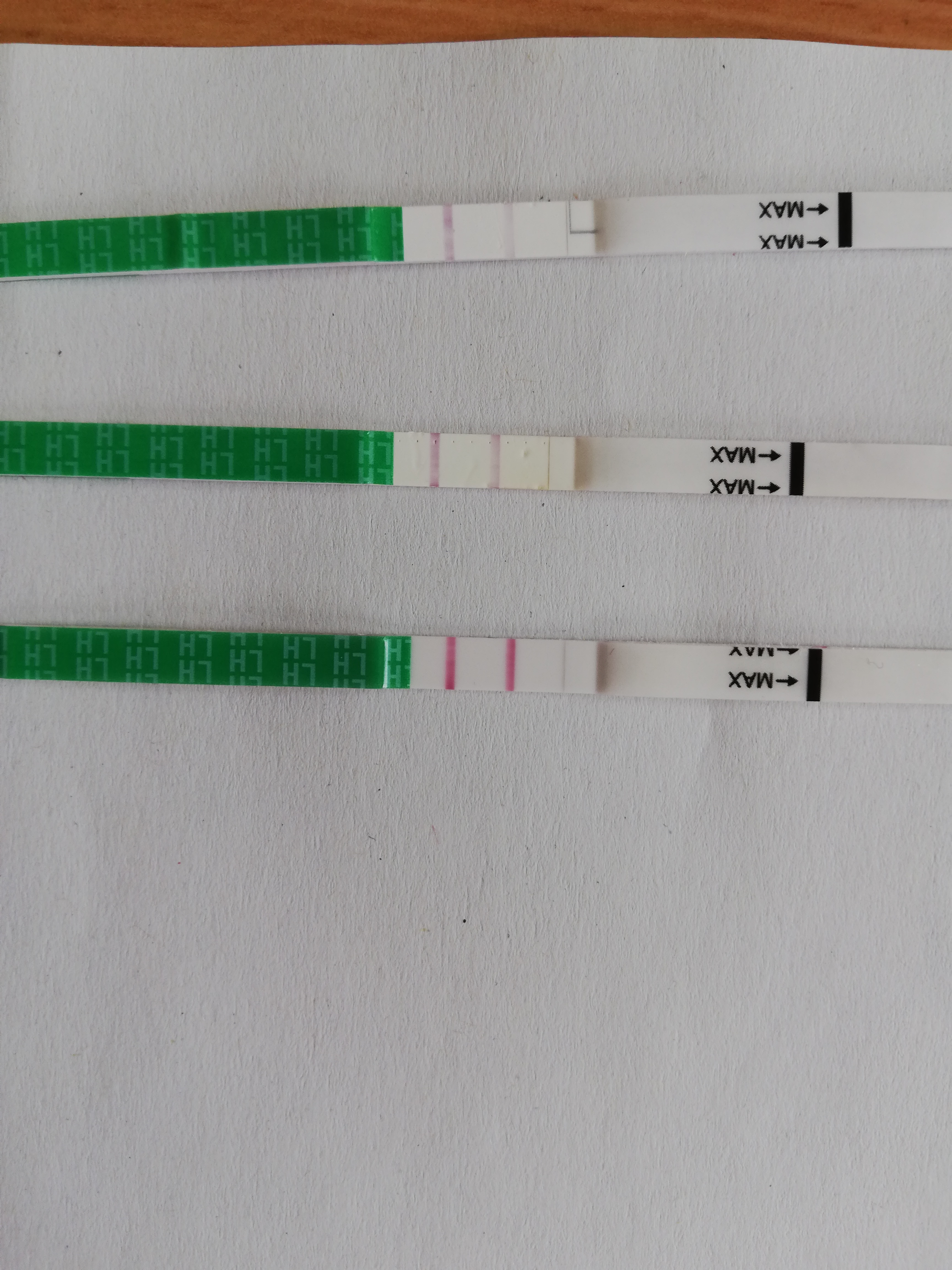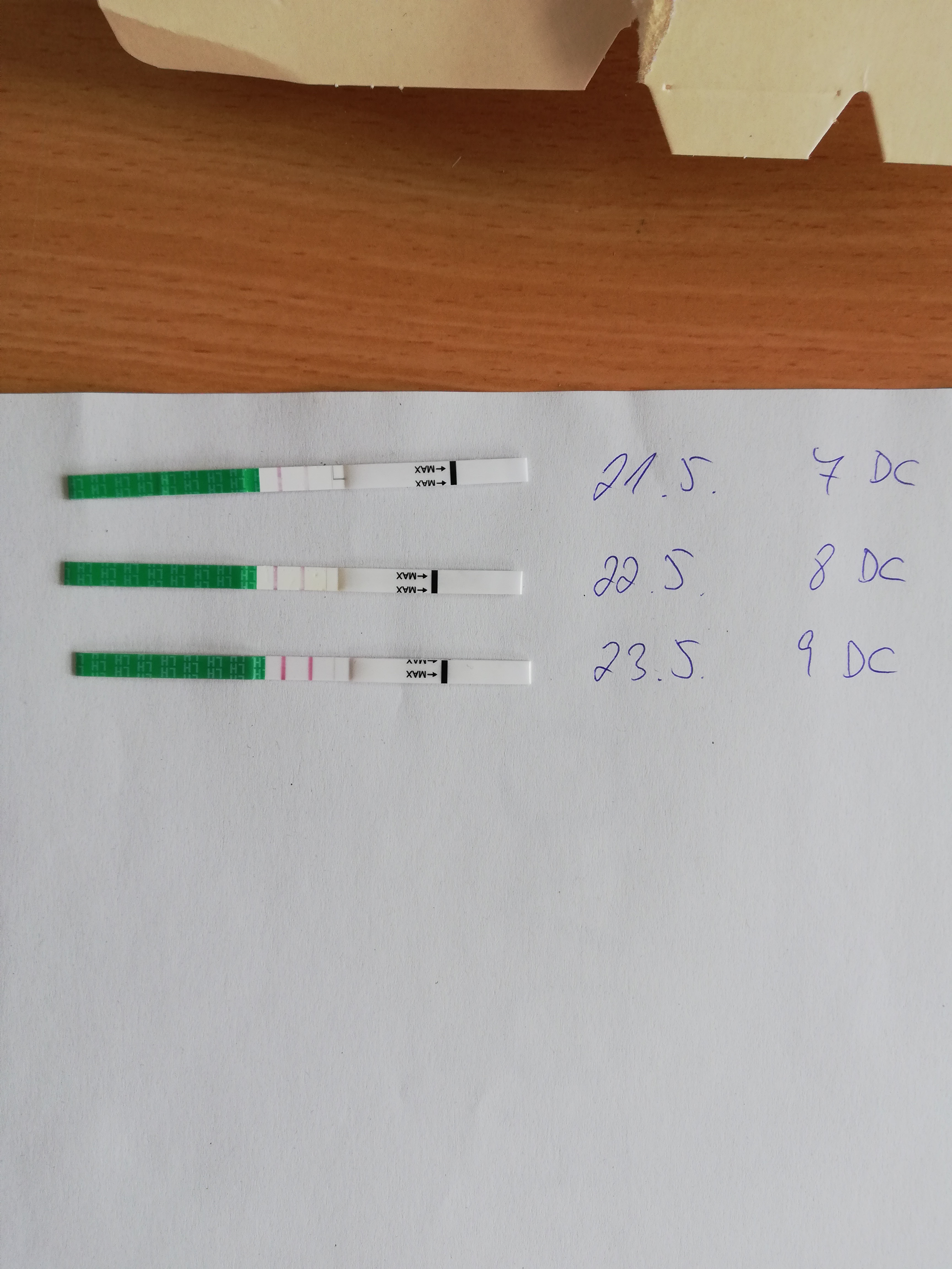 Dobré dopoledne děvčata, prosím o pomoc, je poslední testík pozitivní? Měřím poprvé a nedokážu prostě vypozorovat rozdíl v síle těch čárek