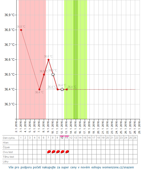 Předešlé ovulace byly 12., 13. a 10. den. 10.1. večer a 11.1. ráno byla čárka vidět, ale nebyla tmavá jako kontrolní. Pak už zase nic. Mohla být ovulace už dneska?