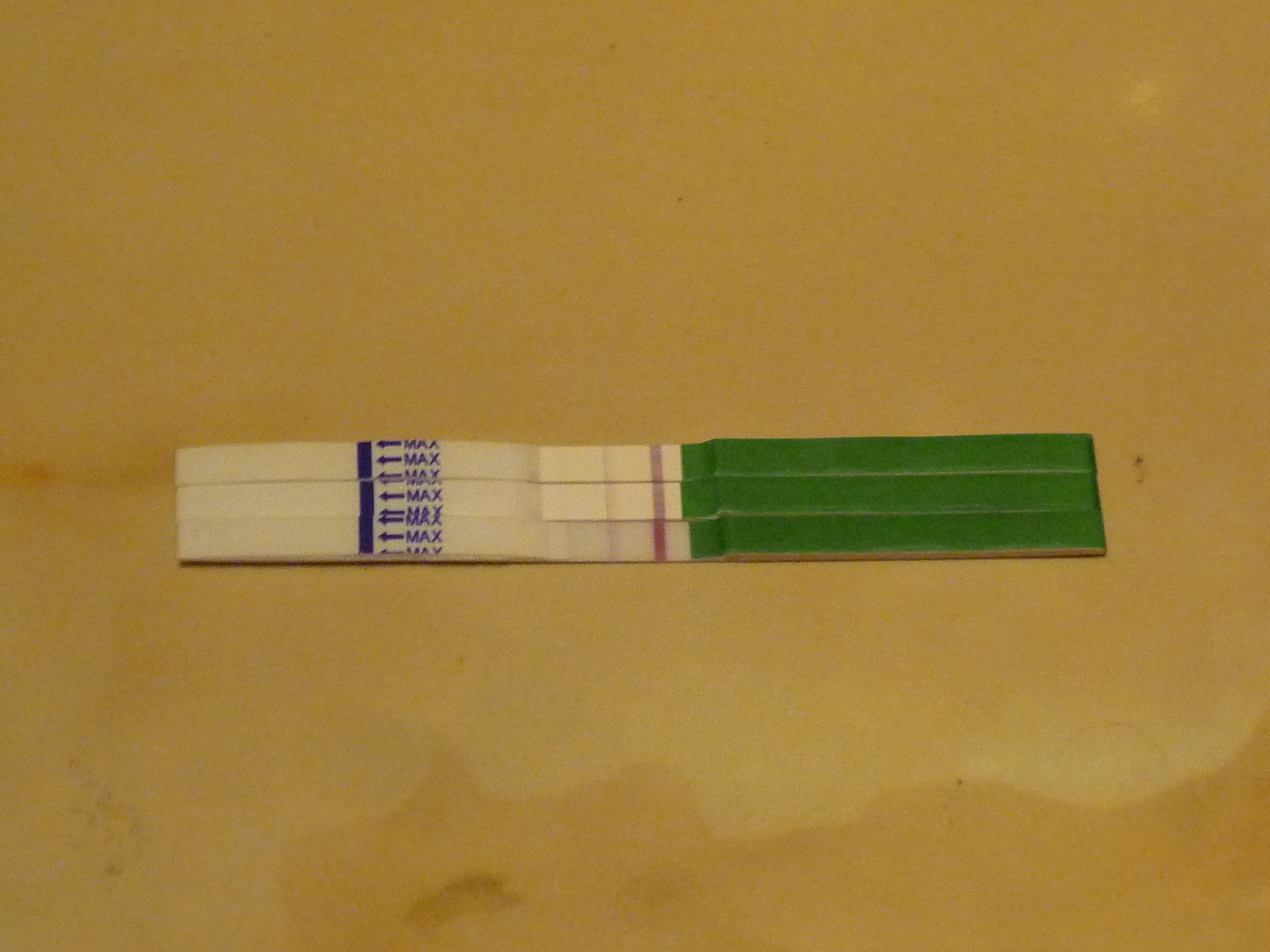 Ahoj holky, prosím vás je pozitivní ten poslední-spodní test? Na fotce to moic nejde vidět. Všechny jsou z dneška. Horní 10:30, prostřední 14:00 a spodní 19:30.