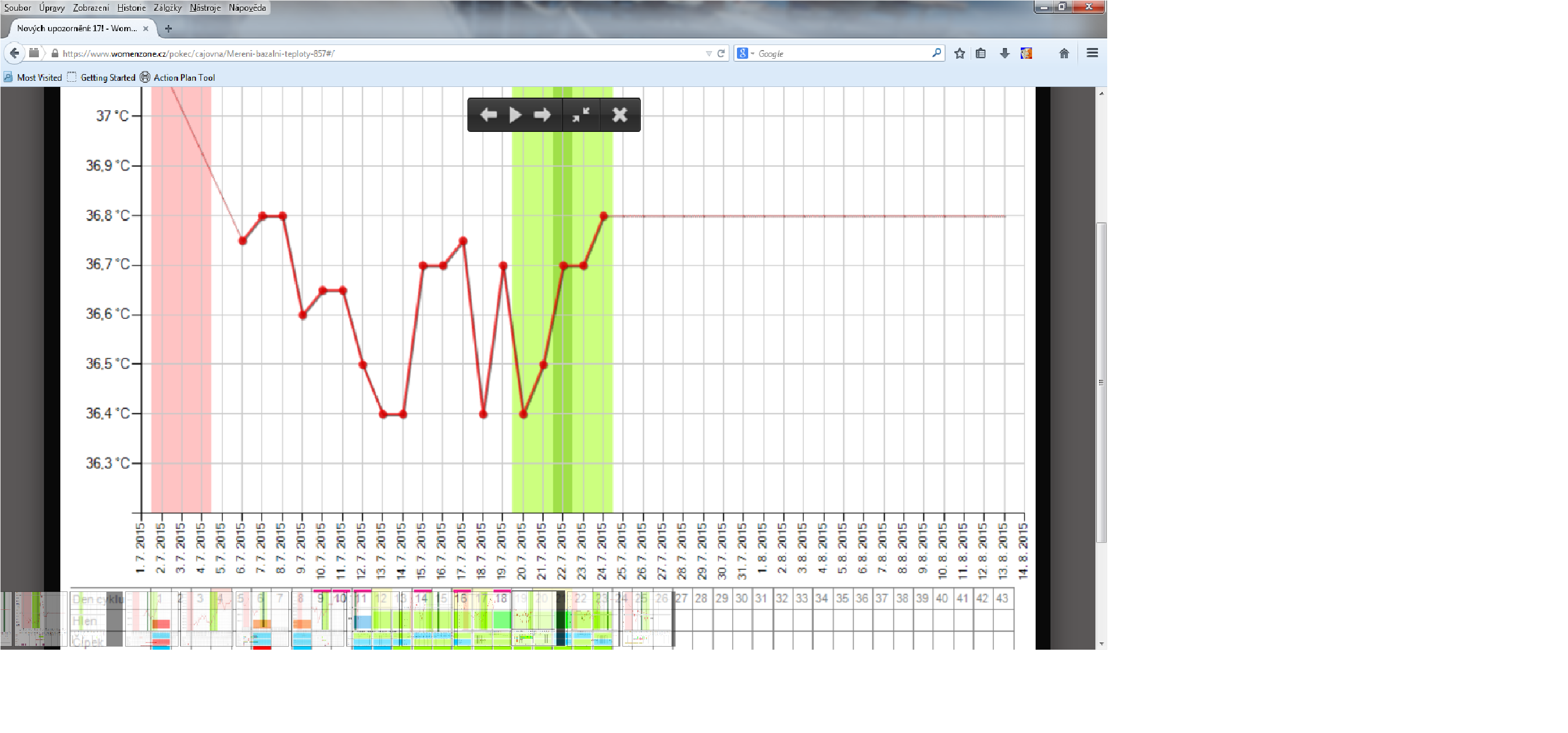 Ahoj holky, prosím, můžete se mi mrknout na graf, jestli došlo k ovulaci, popř. kdy? Nějak se v tom nevyznám a ten můj grafík mi přijde dosti divoký :-P dle předchozího měsíce předpokládám, že teď půjde teplota nahoru nad 37°C... cyklus mám hodně nepravidelný, minulý měsíc např. 42 dní... od včera od večera mě rýpe v podbříšku a při dosedu na židli je to dosti nepříjemné, čím to může být? děkuju moc za názory a přeji hezký den. Veronika