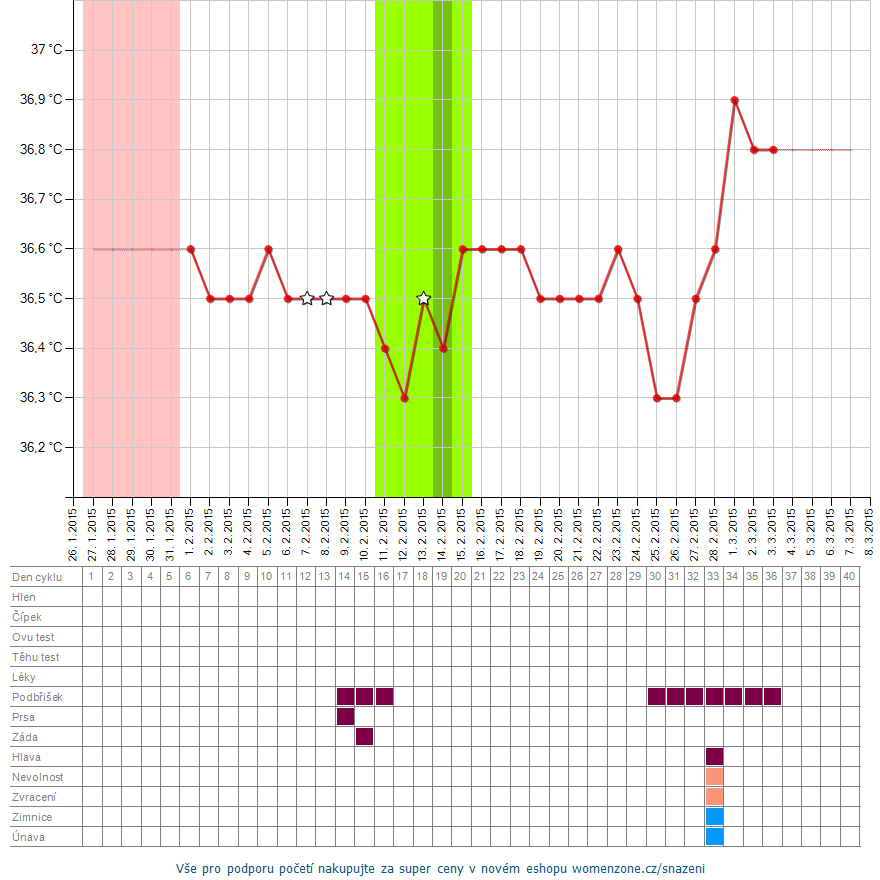 Ahoj všichni...Tak já nevím, jsem dnes podle grafu 17DPO, 36DC a ms nikde...Od 25.2. mě každý den chvilkama pobolívá podbřišek, minulý měsíc cyklus dlouhý 29 dní, luteální fáze byla 11 dní, jinak mám cykly dlouhé max. 34 dní...Těhotenský test negativní, pokud byl toho 25. a 26. 2. implantační pokles, už by něco na testu být mělo, ne? Děkuji všem za názory...