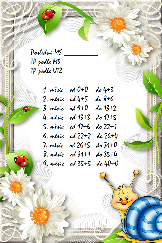 Jinak lunární měsíc trvá 28 dní, tzn. přesně 4 týdny. Těhotenství trvá 40 týdnů = 10 lunárních měsíců. Takže stačí zopakovat násobky čtyř