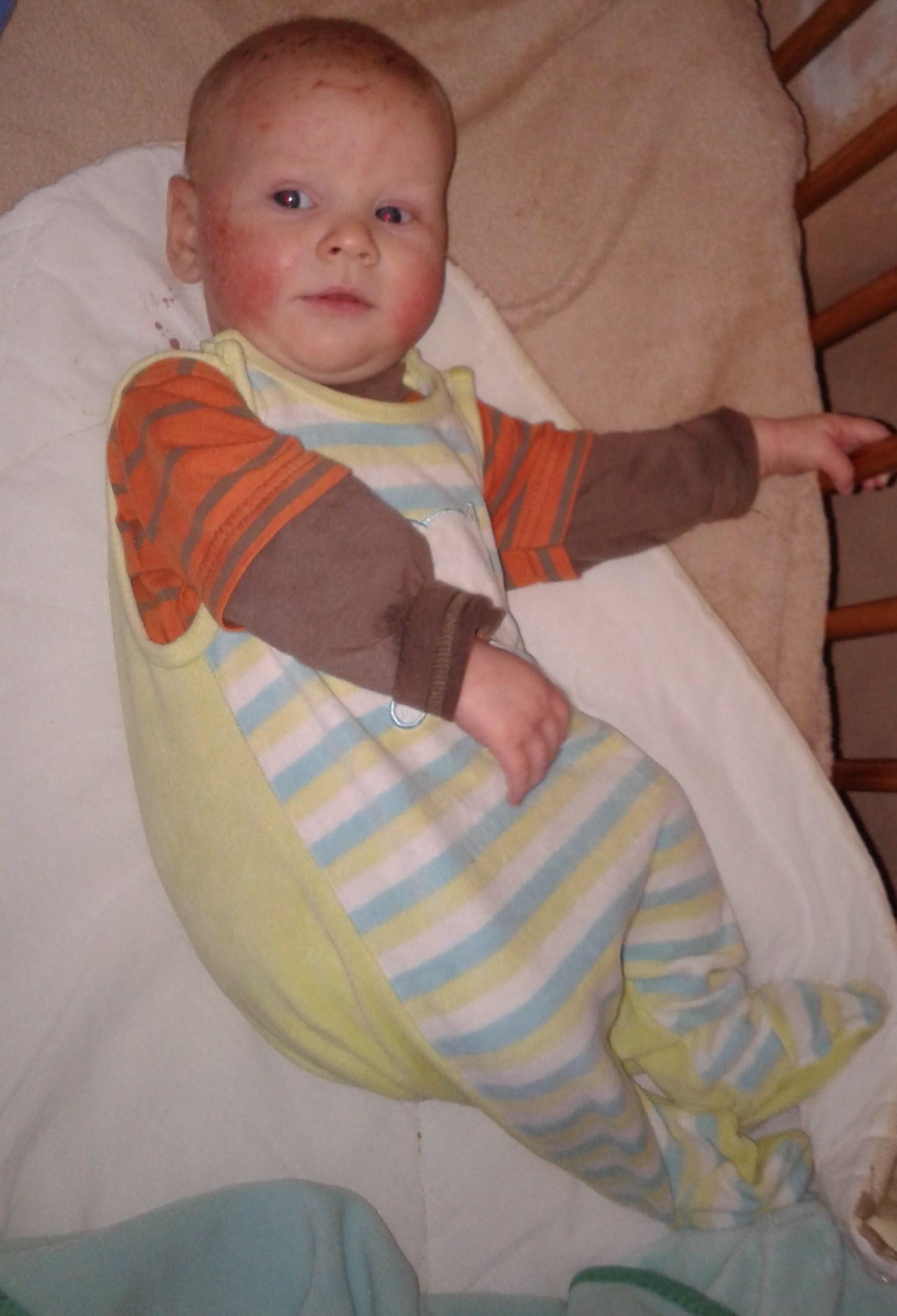 Přikládám fotky, to nejhorší stádium mám bohužel na mobilu, ale vypadalo to ještě hůř než u tvého syna