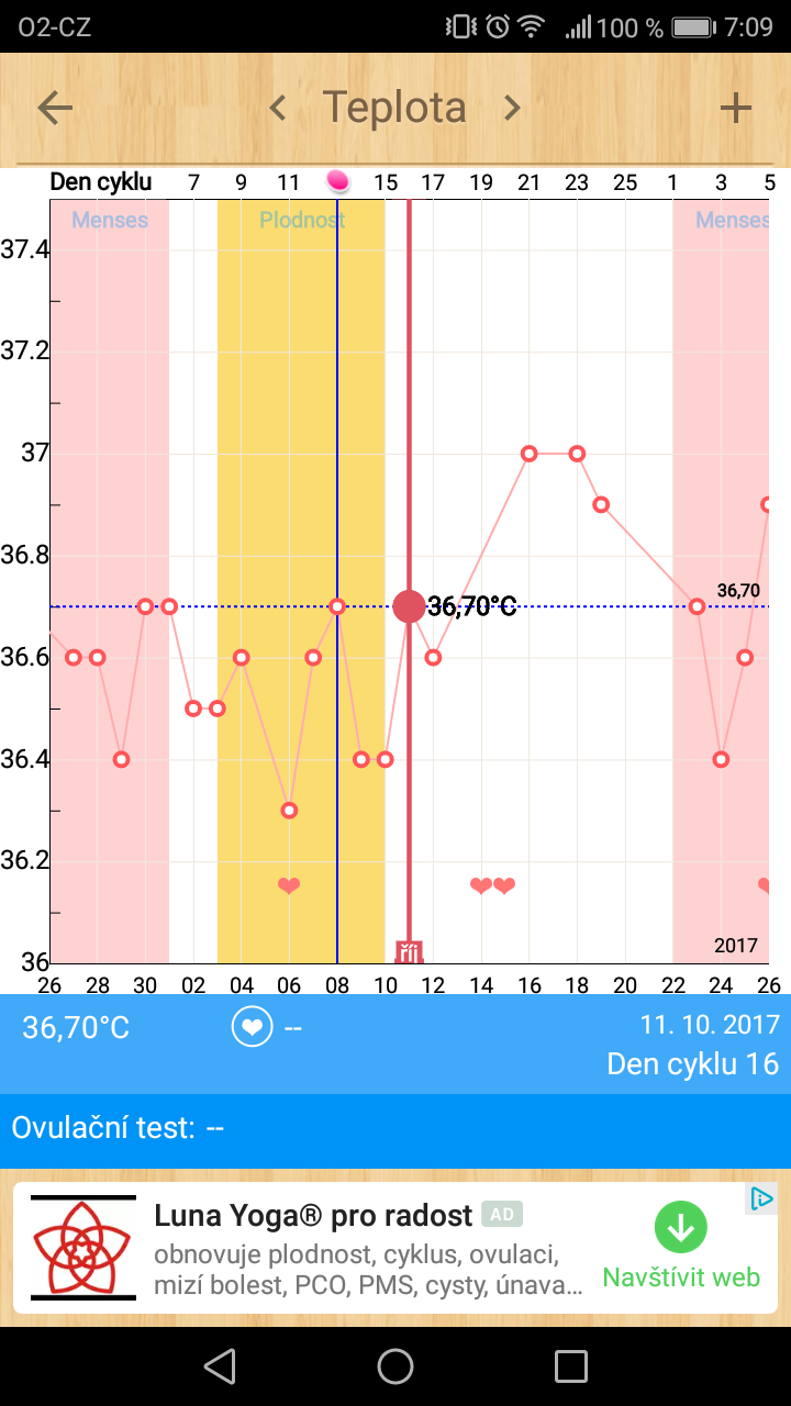 11.12.2017 8:53Myslim ze aplikace vyhodnotila ovulaci spatne, takze bych ocekavala ms pozdeji. No a jinak nizke teploty nic nezmamenaji, ani tehotenstvi.