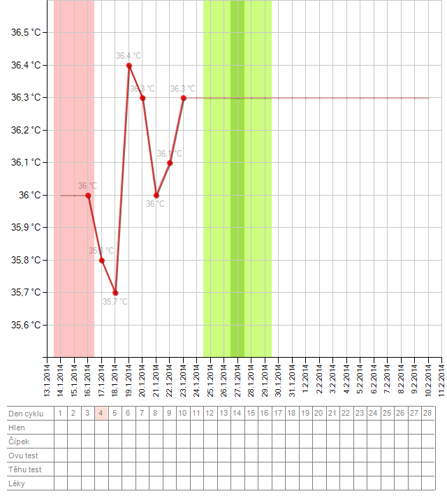 od posledního cyklu, který byl 14.-17.1.14 jsem si začala měřit teplotu v pochvě.....měřím cca 5°°hod ráno kdy tak vstávám do práce.....dělám něco špatně nebo už mám plodné dny? podle kalendáře by plodné dny měly být 25.-29.1. z toho 27.1. by měla být ovulace