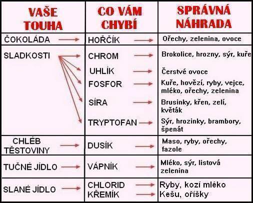 • ahojky, ne všemu co se dočtu na netu věřím, ale prý chuť na čokoládu vyvolává nedostatek hořčíku... hele na tuhle tabulku a je fakt, že co do sebe sem tam hodím tabletku hořčíku a selenu nepřepadají mě tak hrozné chutě