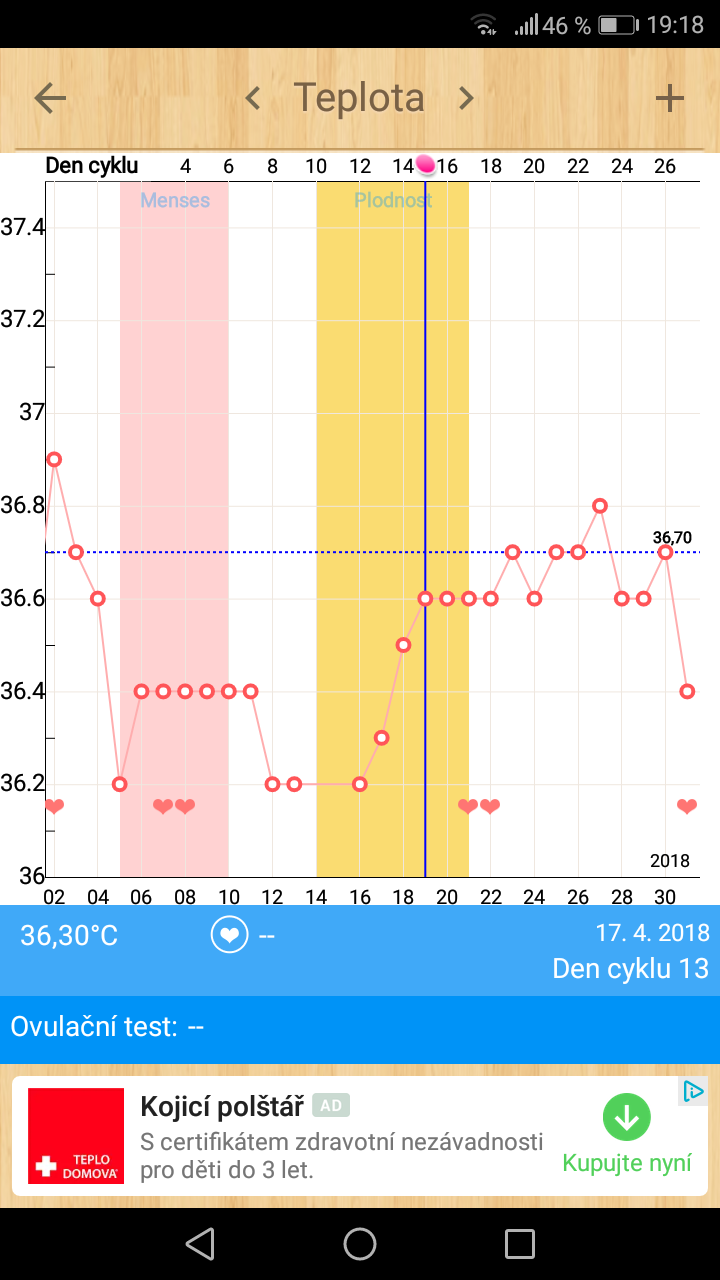ahoj, potřebovala bych poradit, kdy byla ovulace a kdy mám očekávat ms. Ms měla začít už v pondělí, ale doteď ani špinění. Při sexu se chráníme kondomy, takže těhotenství je snad vyloučeno. Co si myslíte o mém grafu BT vy?