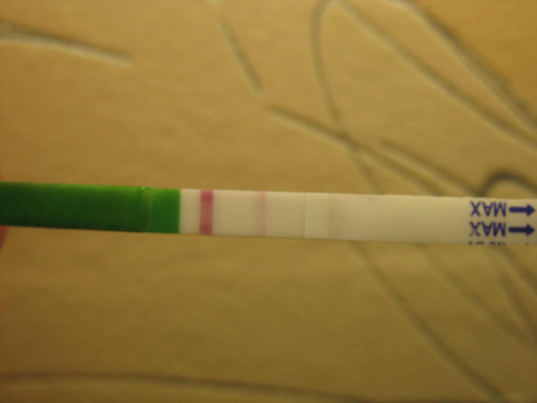 a tohle je dnes dělaný těhotenský test,duch do limitu byl ,test se ale po hodině rozpyl,tak je to blbě vidět.