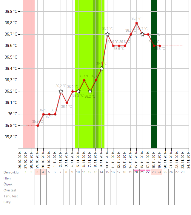 19.11.2014 17:03Presne. Nedá sa povedať. Ja som mala podobný graf minulý mesiac a nič. Takže čakať, alebo test by ti už povedal