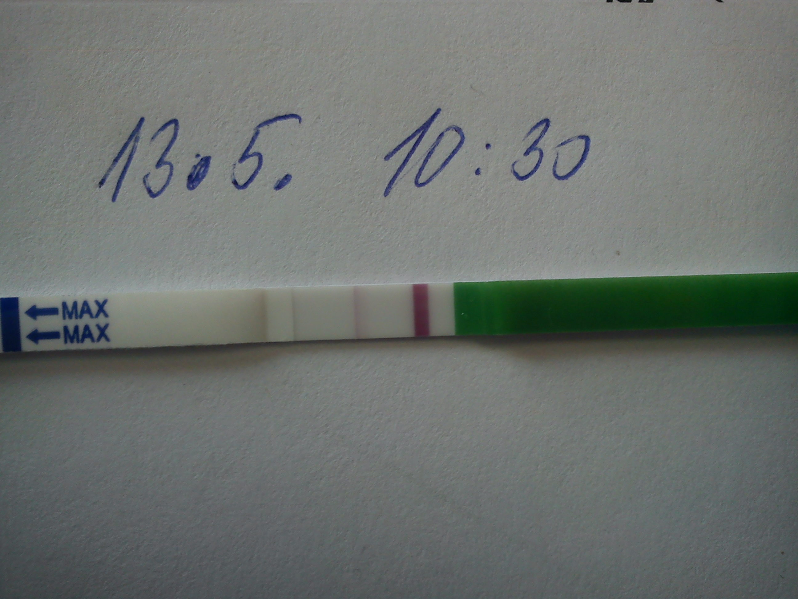 Podle kalendáře jsem měla mít 11-15.5. plodné dny, 13.5. ovulaci. Děla jsem ovu testy a byly max jak jsem vyfotila. Takhle vypadal dopoledne kolem 10:30, večer (cca 19-19:30) byla čárečka vždy ještě slabší. dnes mě ráno bolelo břicho jako při MS a pak jsme cítila takovou ostrou bolest nejdříve v pravo a pak za nějakou dobu zase vlevo. Ovu test opět stejný jako na fotce. Podle testů tedy předpokládam, že ovu nebyla
