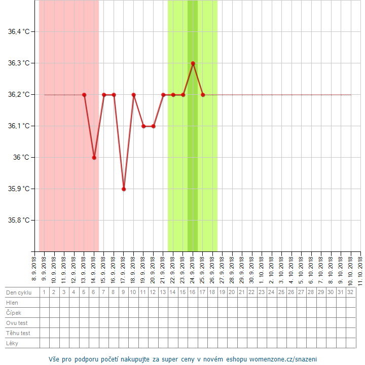 Ahoj holčiny, už rok se snažíme s manželem o početí potomka, minulí týden jsem byla i u gynekoložky a ta říkala, že jsem v naprostém pořádku a že ted se mi blíží ovulace říkala během 2 až 3 dnů by mi měla začít.. delší domu si měřím bazální teplo, ale úplně žádné výkyvy že by měla být ovulace nevidím.. prosím mrknete se mi na můj graf? a poradíte mi.. jestli to takhle má být nebo ne.. měřím si jí každý den ve stejnou hodinu ranní.. pod jazykem měřím